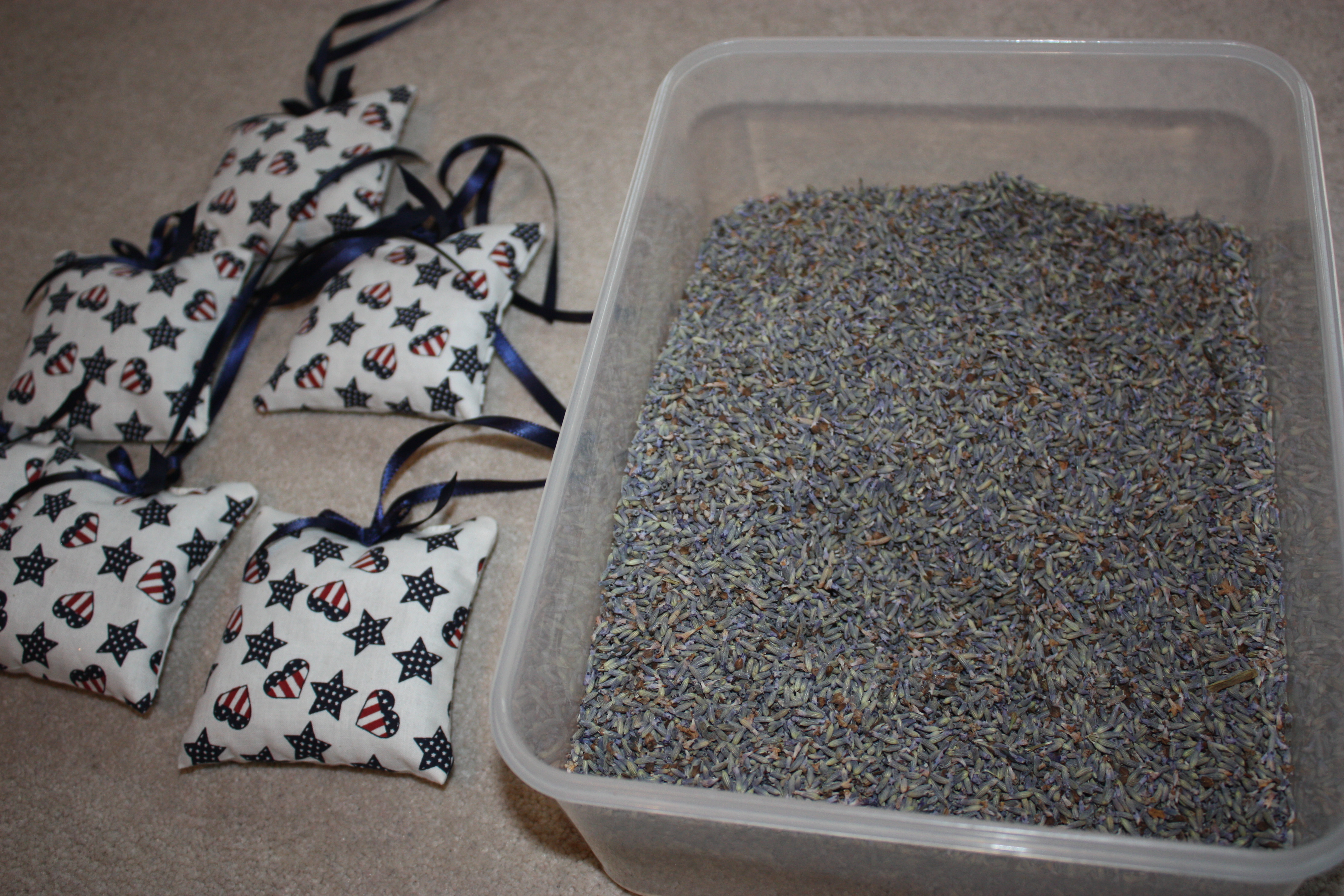 Sachets & container of lavender Published February 13, 2012 at 4272 × 2848 in Discovering what I was supposed to do … and Lavender Sachets, too.