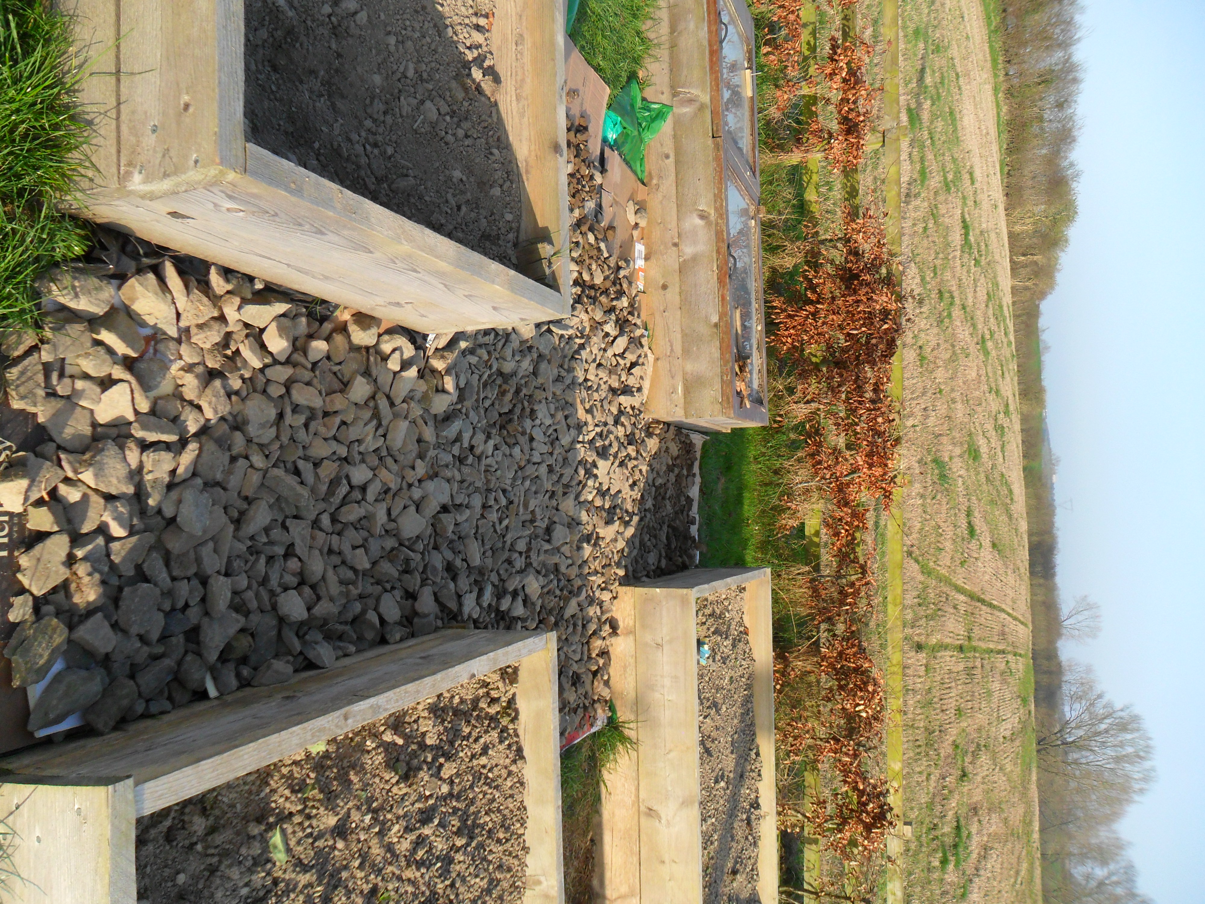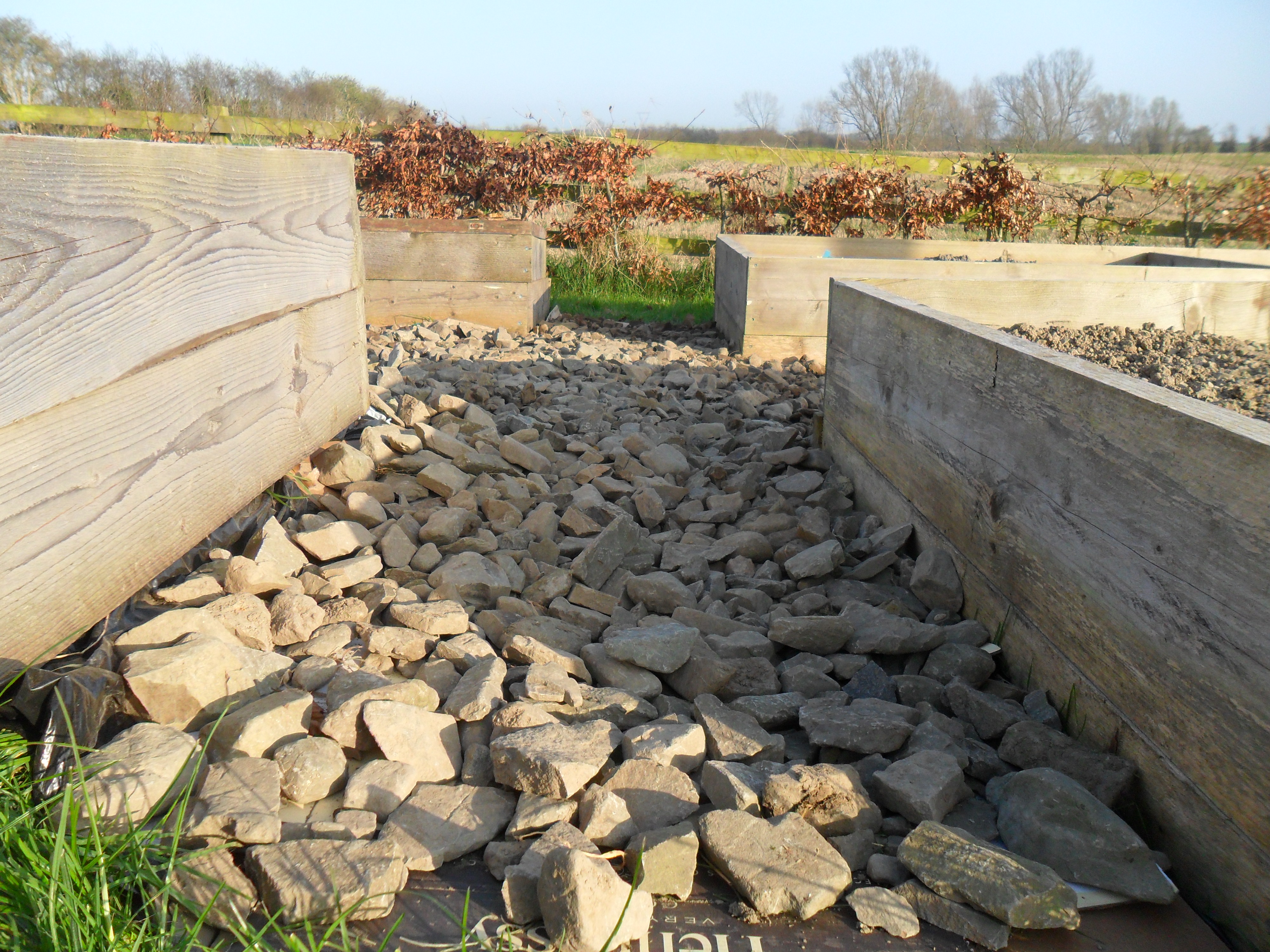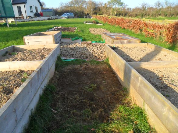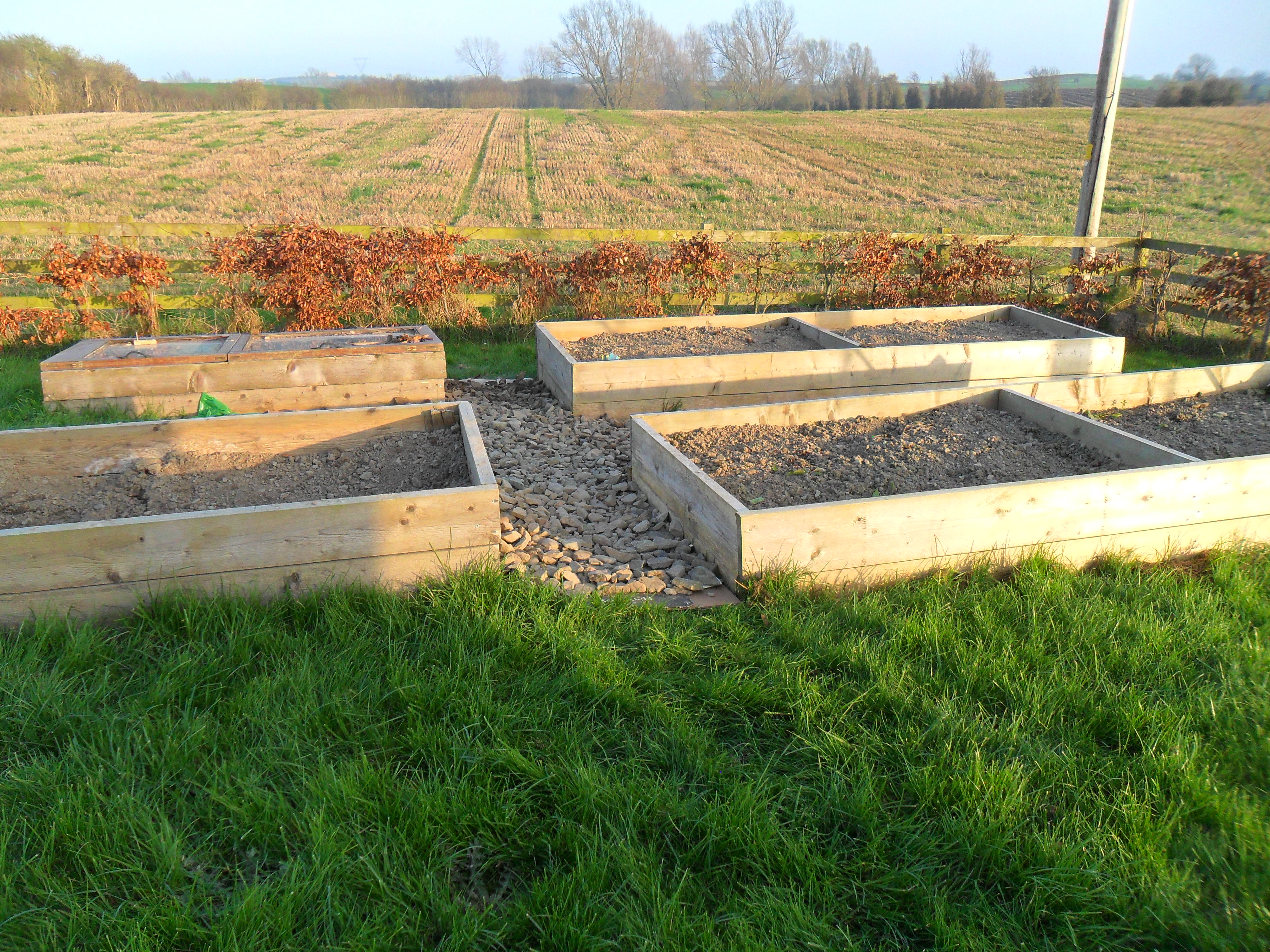 3 thoughts on “A stone pathway between raised vegetable beds.
