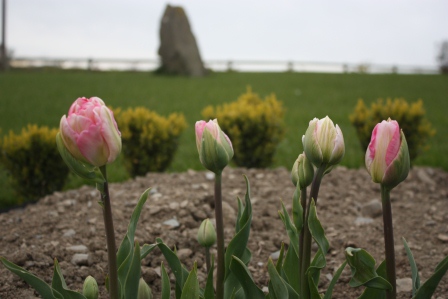 The blog has become a bit of a family project.  The kids like to know what I’m writing about and taking pictures of, especially if they are helping in the garden.  My 12 year old daughter laughed at my Rose Garden post since I hadn’t actually posted any pictures of the rose plants.  There really wasn’t any point in posting pictures of small little plants with no roses, though!  The tulips are much prettier!  So I did throw in a picture of one of the rose plants that is now coming along nicely.  More in the rose garden, my late tulips (Double late Angelique)  are blooming, too.