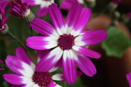 I’ve planted some Senetti in a container.  The color is “baby magenta bicolor”.  A very cheerful flower!