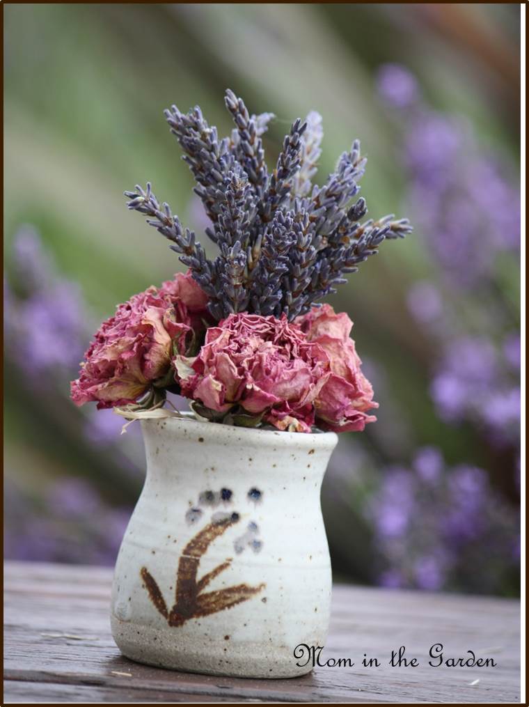 Lavender with roses in small vase Published July 28, 2014 at 760 × 1015 in A lavender wreath with roses and herbs Using an egg cup made of pottery.