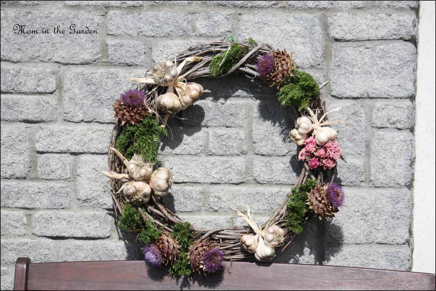 Garlic Wreath close up Published August 28, 2014 at 1504 × 1004 in Grow your own/Make your own: A Garlic Wreath with panache! Garlic Wreath with artichokes and roses