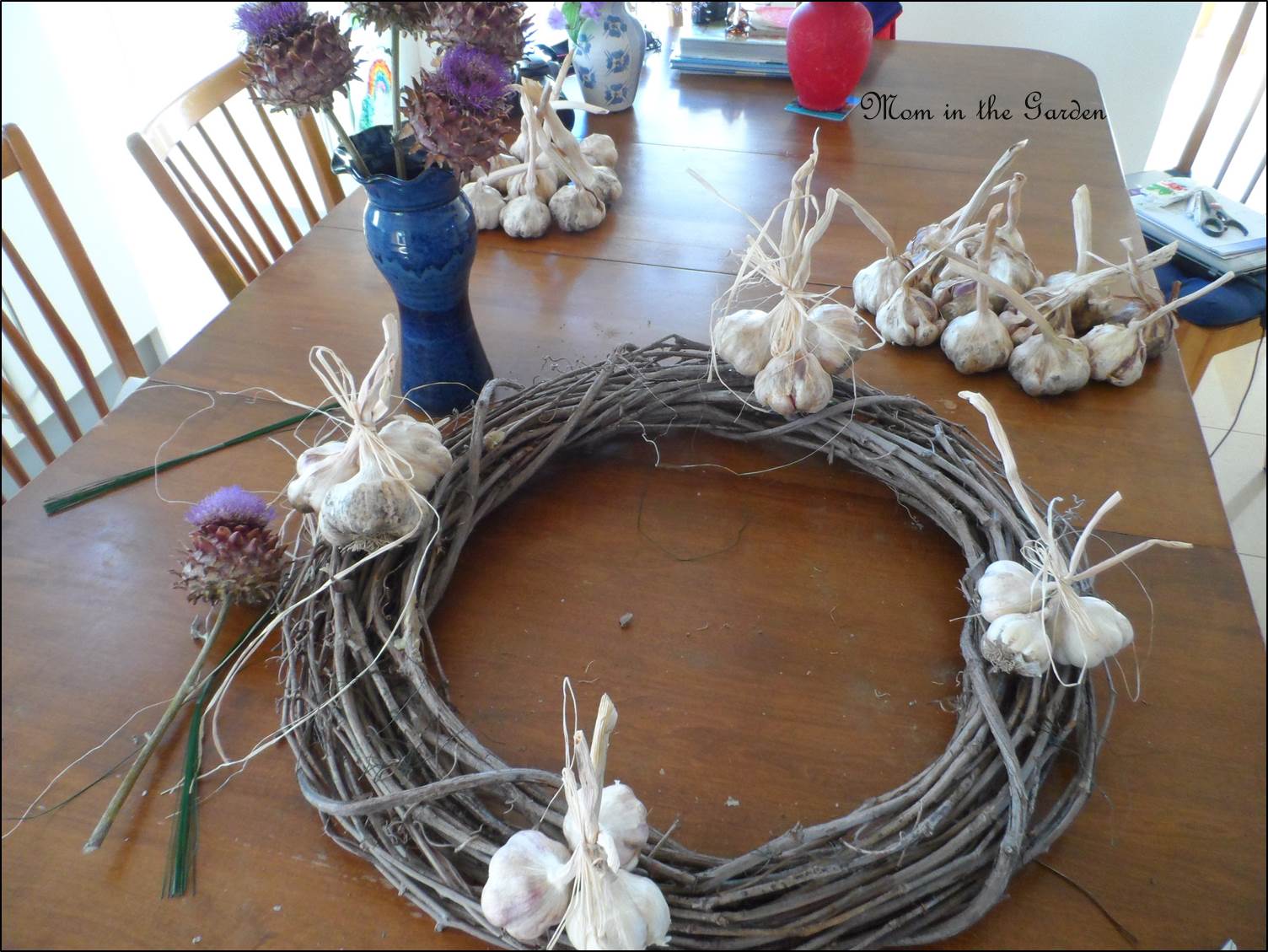 Garlic Wreath in the making 2 Published August 28, 2014 at 1504 × 1129 in Grow your own/Make your own: A Garlic Wreath with panache! What to add to the wreath…