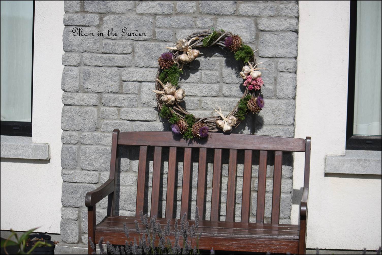 Garlic Wreath with bench Published August 28, 2014 at 1504 × 1004 in Grow your own/Make your own: A Garlic Wreath with panache! Leaning on our garden bench