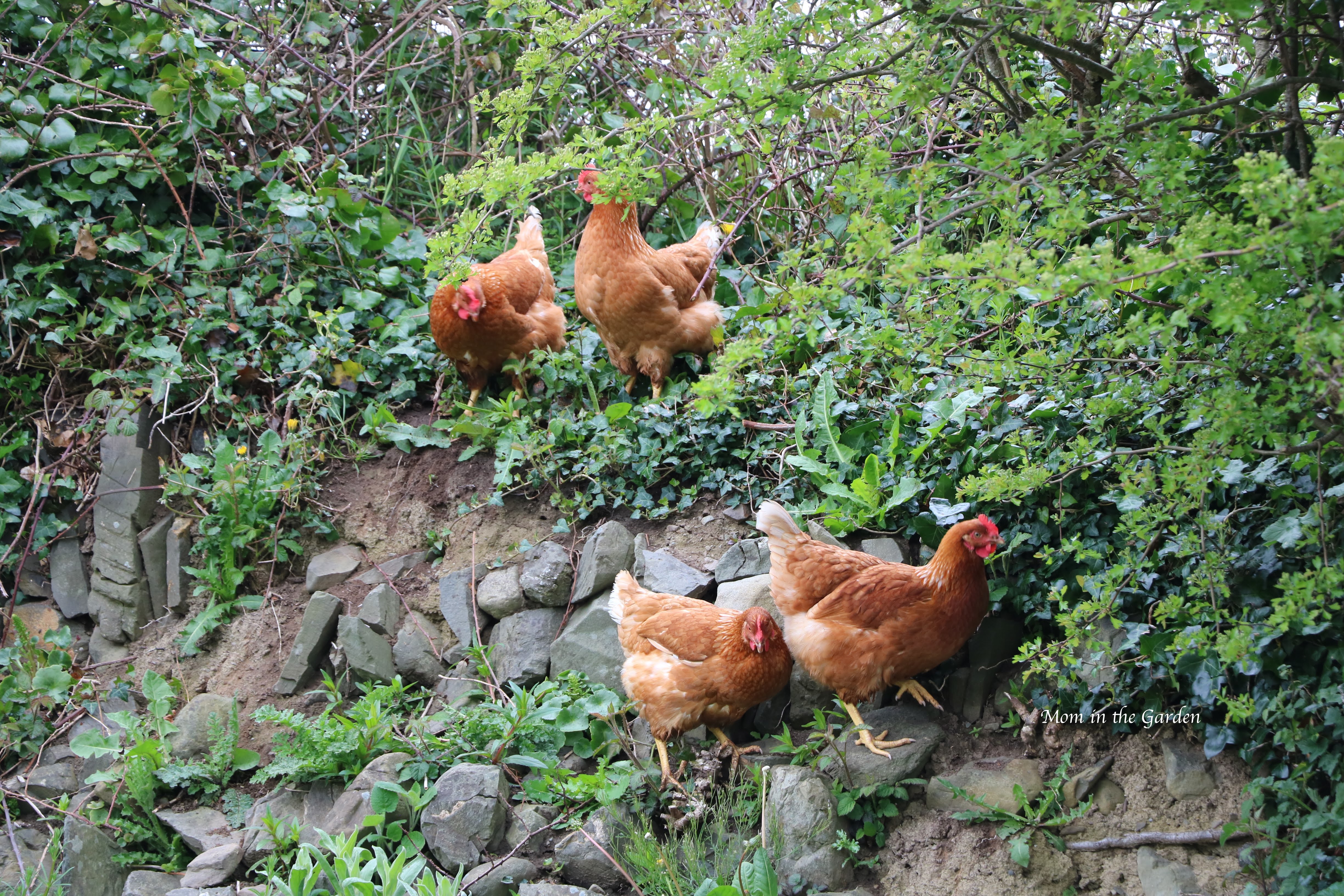 Chickens climbing ditch wall hill Published November 9, 2019 at 4898 × 3265 in My chicken story Poppy, Lily, Rose and Daisy climbing the wall/hill in our yard