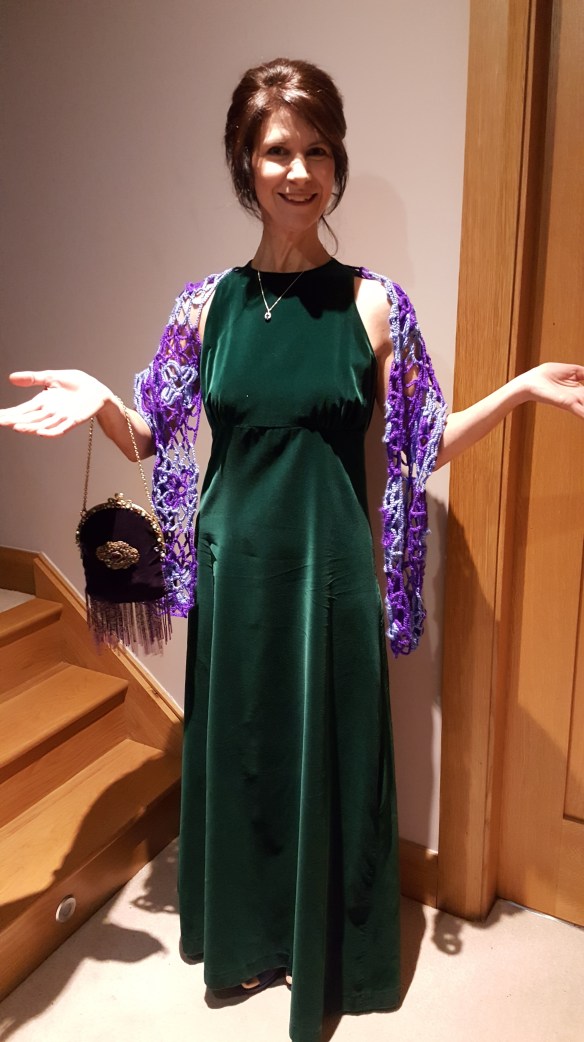 Ta-da! Finished! Everything was so worth the effort. The dress was beautiful (and can I say that it was really comfortable, too?!). The hairdressers completely transformed me. It is still a mystery to me how they do that. My daughter, the shawl, the bag, everything was just lovely. We had such a wonderful time at her ball. It was a very special night for us.