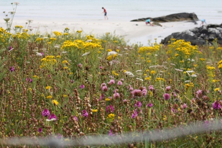 A ‘Welcome’ sign at the airport made with flowers and greenery