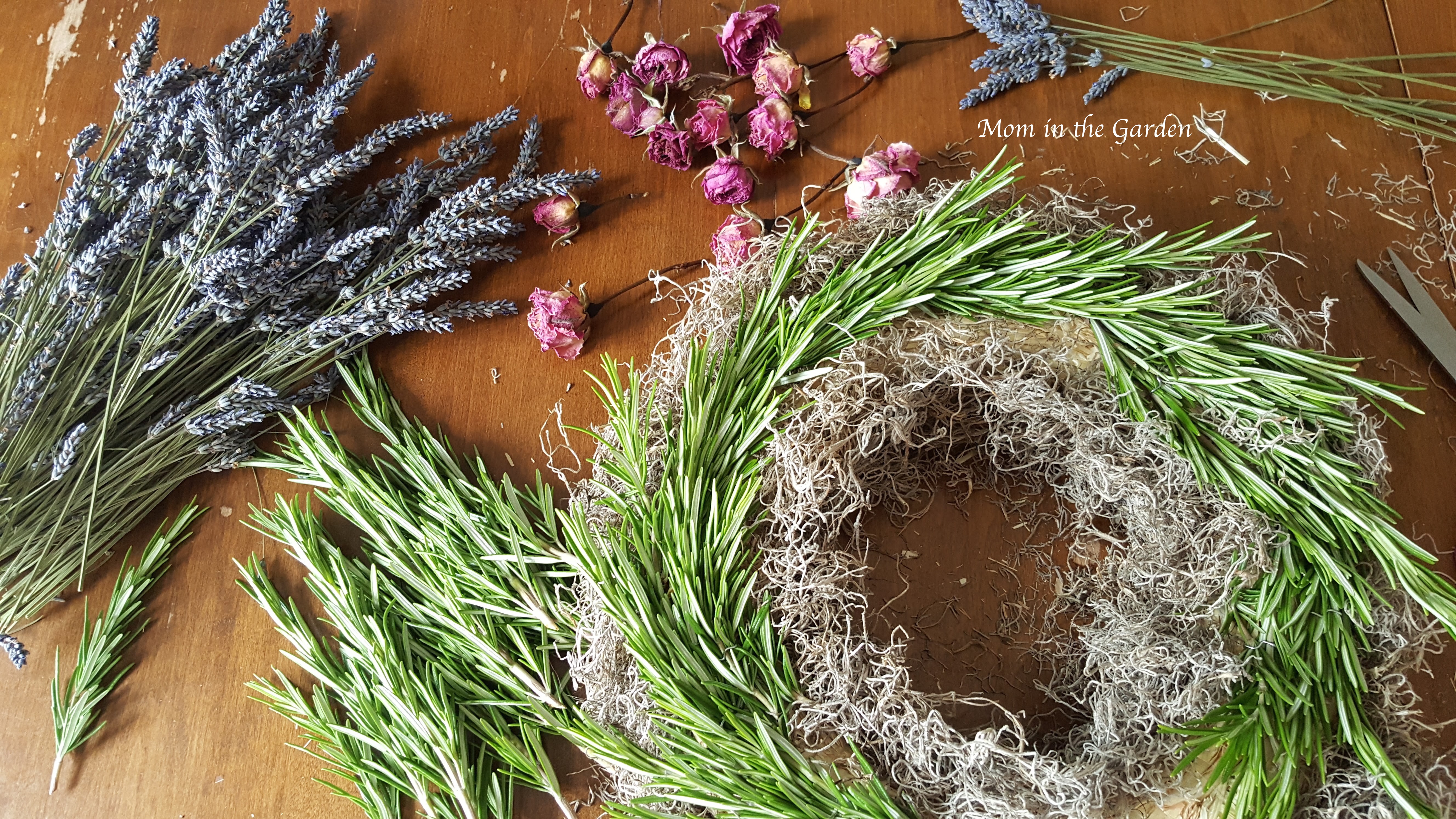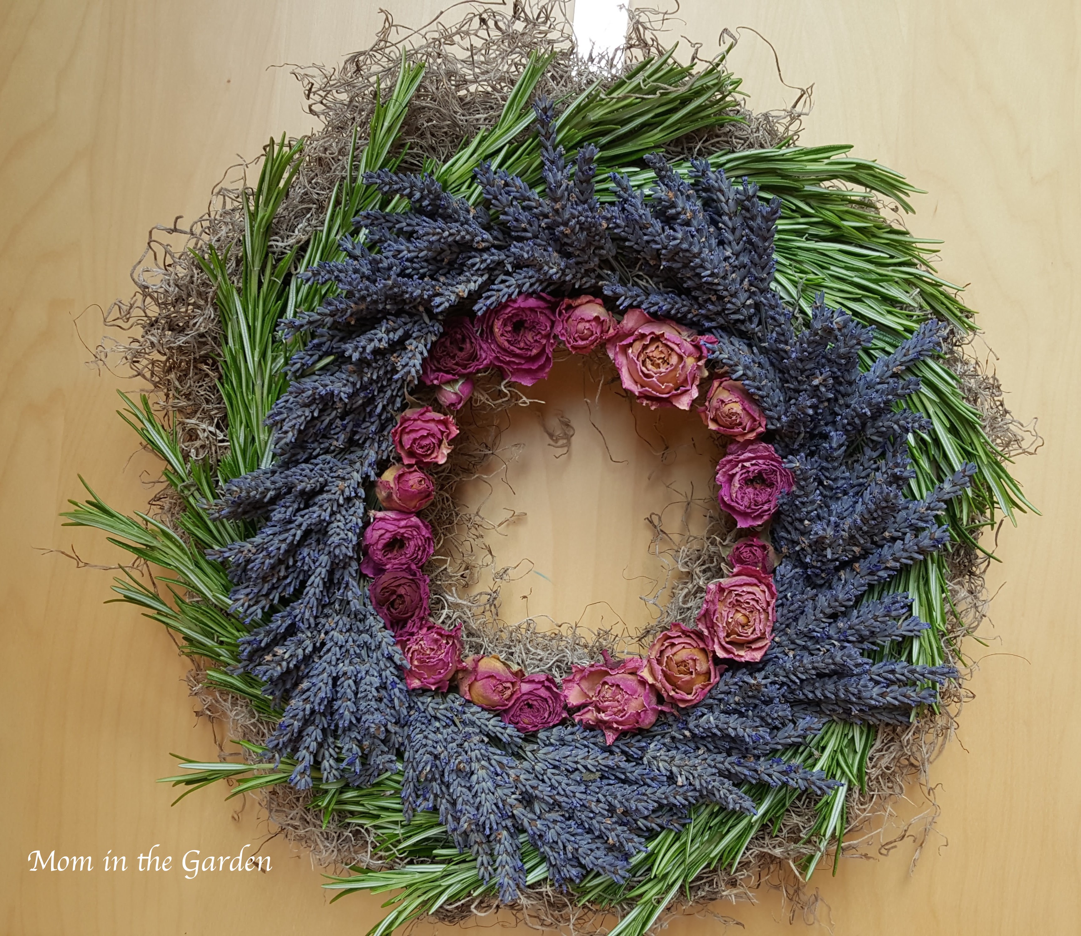 I took apart one of last year’s lavender wreaths. Here’s what came off of it! (Lavender, Rosemary, Roses, Spanish moss)