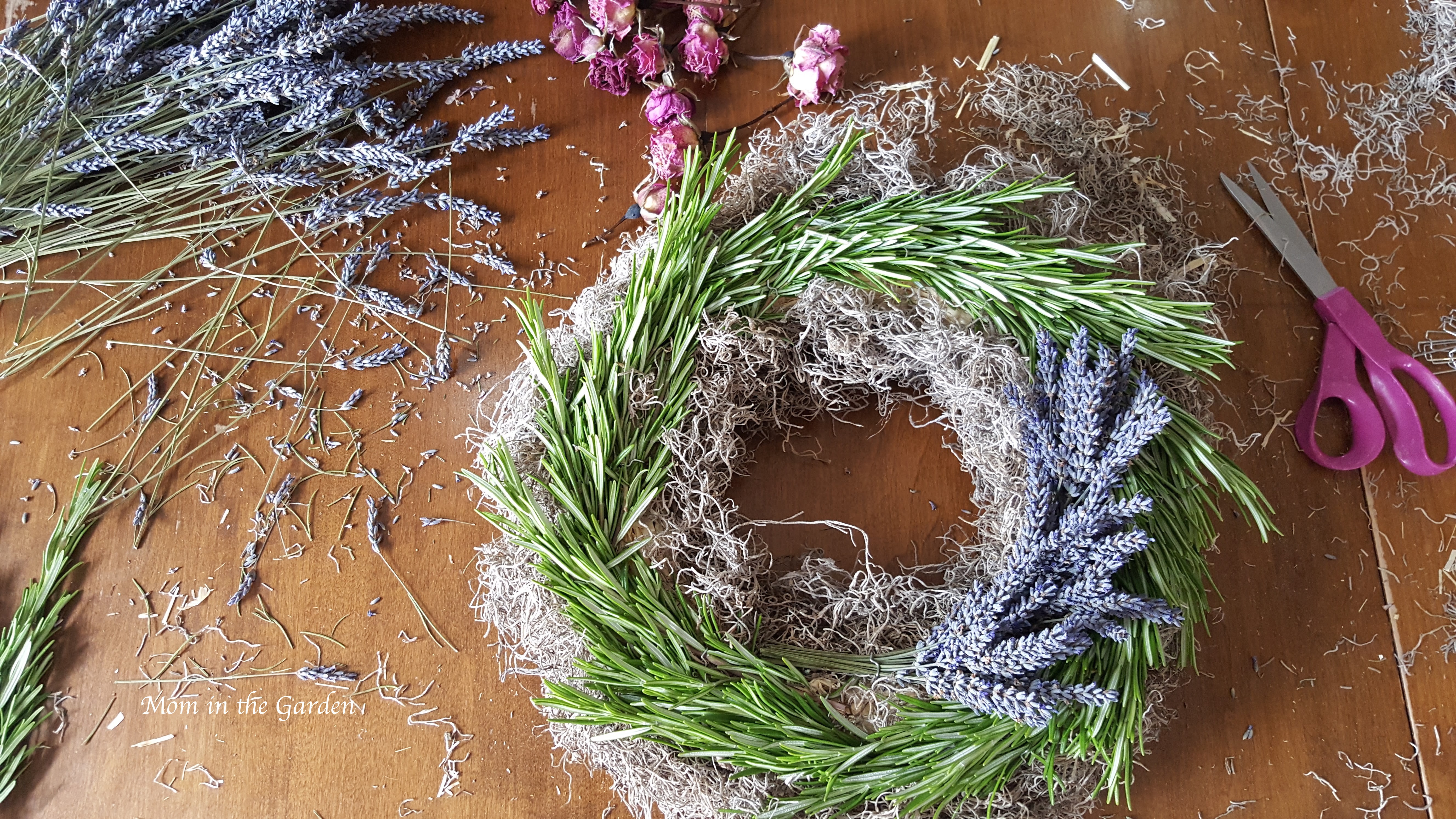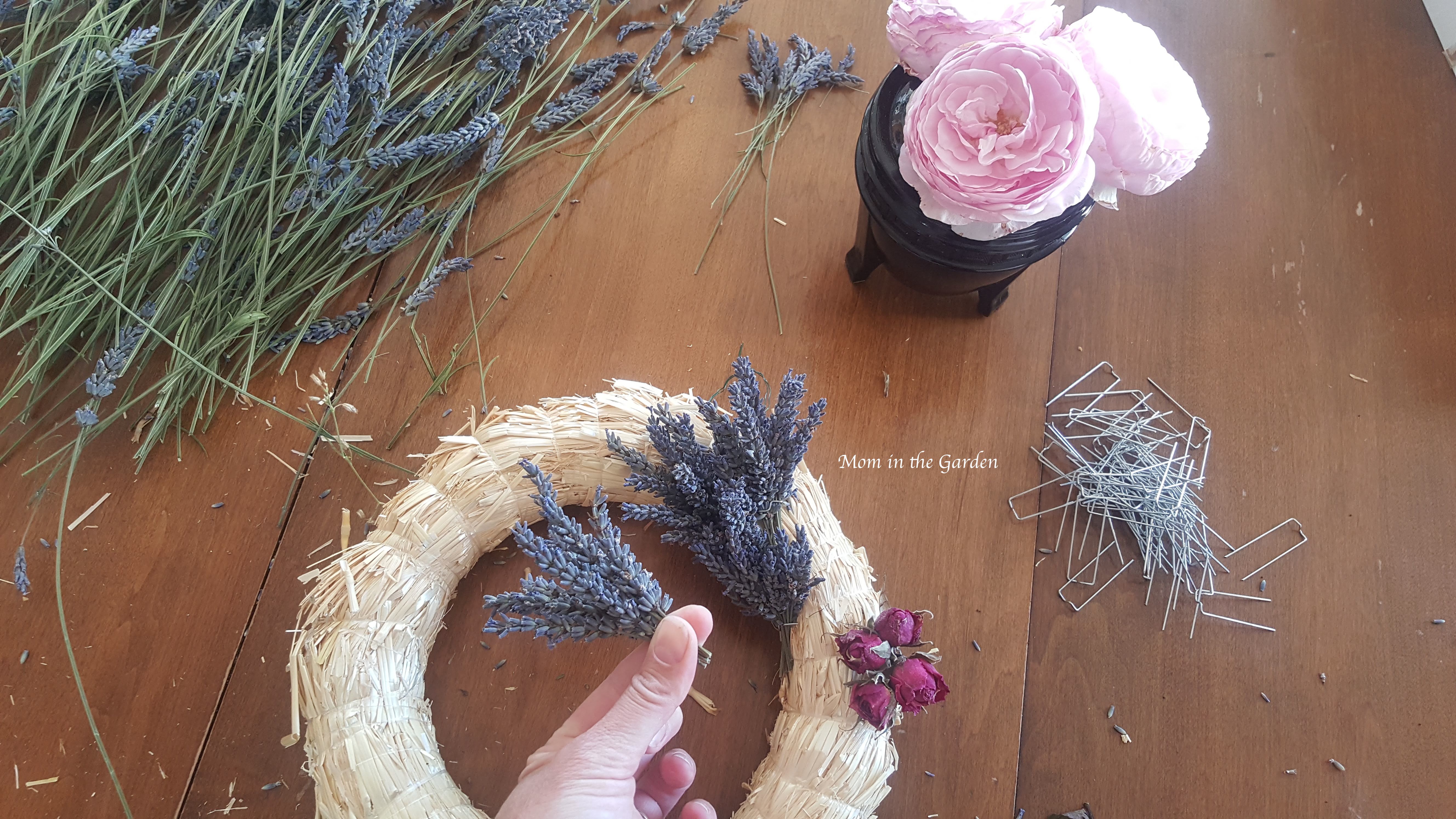 It can be a tedious task, as it takes many, many bunches of lavender to fill the wreath! The up-side is that the room smells wonderful while working with the lavender!