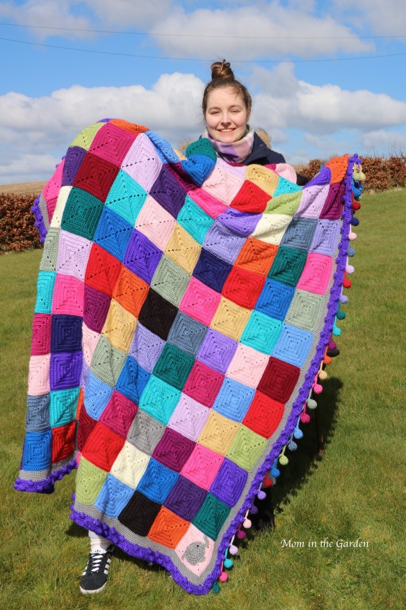 What an amazing experience it was making this blanket. I loved working with all of those gorgeous colors! The balls were new to me, and fun and easy to make. Best of all, my daughter loved it start to finish (I consulted with her all along the way). It was truly a labor of love!