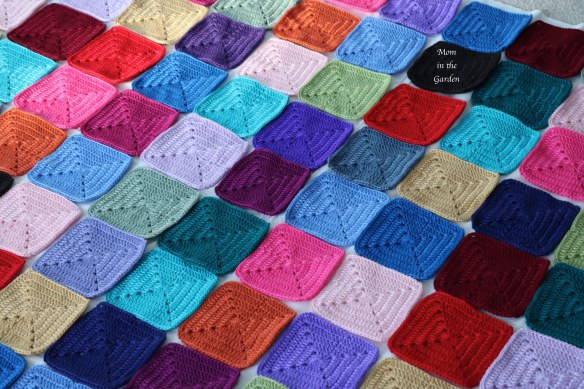 So this is the story of my creating our own Elmer blanket. I was lucky to have LOADS of colors to use (21 different colors, actually). I have no idea where I had all of that yarn stashed (read: hidden)! I’ve learned from previous projects that it is best to use the same type of yarn throughout a project. My yarn of choice here was Caron Simply Soft.