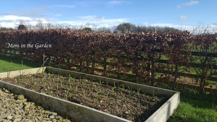 “Winter garlic” can be planted any time in the fall. The rule of thumb is to get your cloves in the ground before Christmas, to ensure (in Ireland) that they get enough time in soil that is cold enough. My husband enlisted the help of our youngest daughter to assist with planting. We’re using different beds for the garlic this year, and since I had cleared the two beds of weeds following our pumpkin harvest a while back, they could set to work straight away.