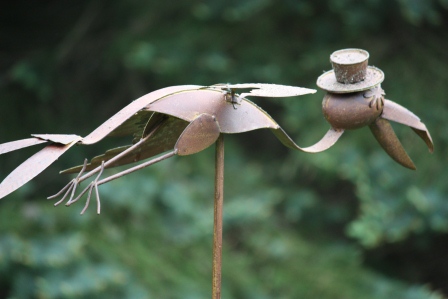 We’re wrapping up August with this collage. I rarely mention the wild fennel that I grow, but it is very pretty. The flowers are yellow and dainty. I enjoy watching the birds as they try and balance on the stems while eating the seeds in the winter. The plant isn’t just for birds, as it is edible for our consumption, too. The other plant not mentioned often enough: globe artichokes. I’ve used some in this flower arrangement – they look like purple thistle. The globe artichokes were arranged with roses, sunflowers and helenium.