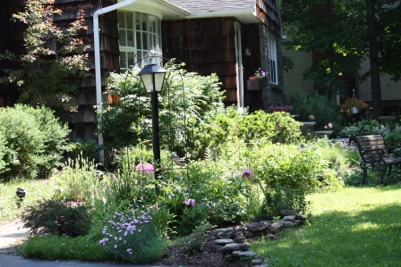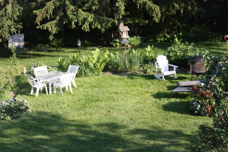 The birch tree bed was completely taken over by poppies in July. It was quite remarkable as they were 99% one variety (a single flower, lilac color) and I didn’t plant any of them. They come from my compost which apparently doesn’t get hot enough to kill seeds. So whatever I put in the compost, has the potential to come back!