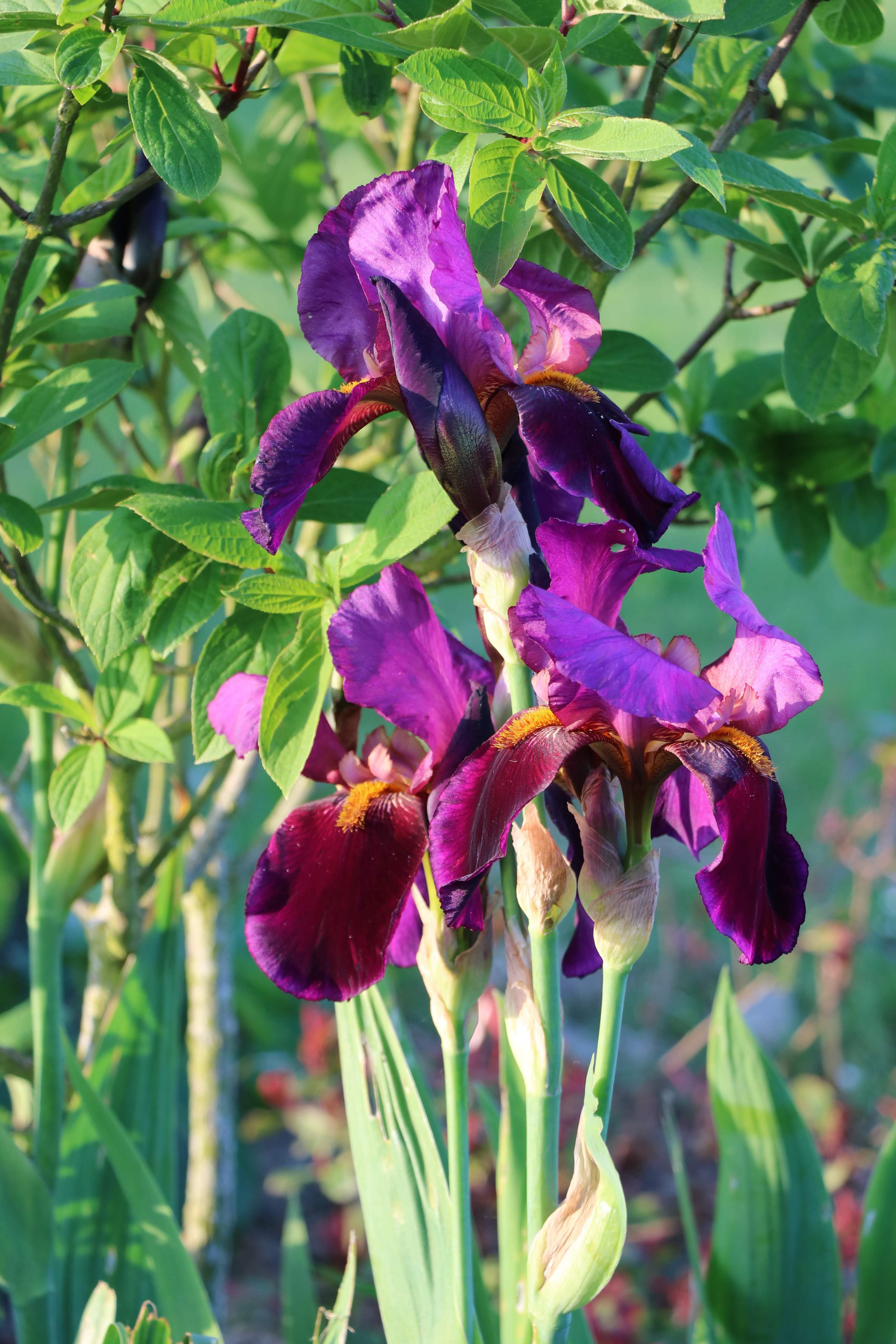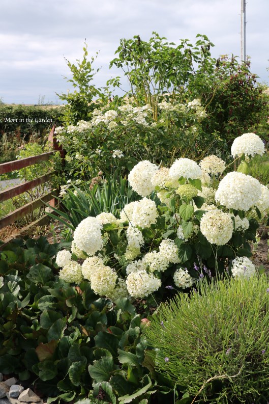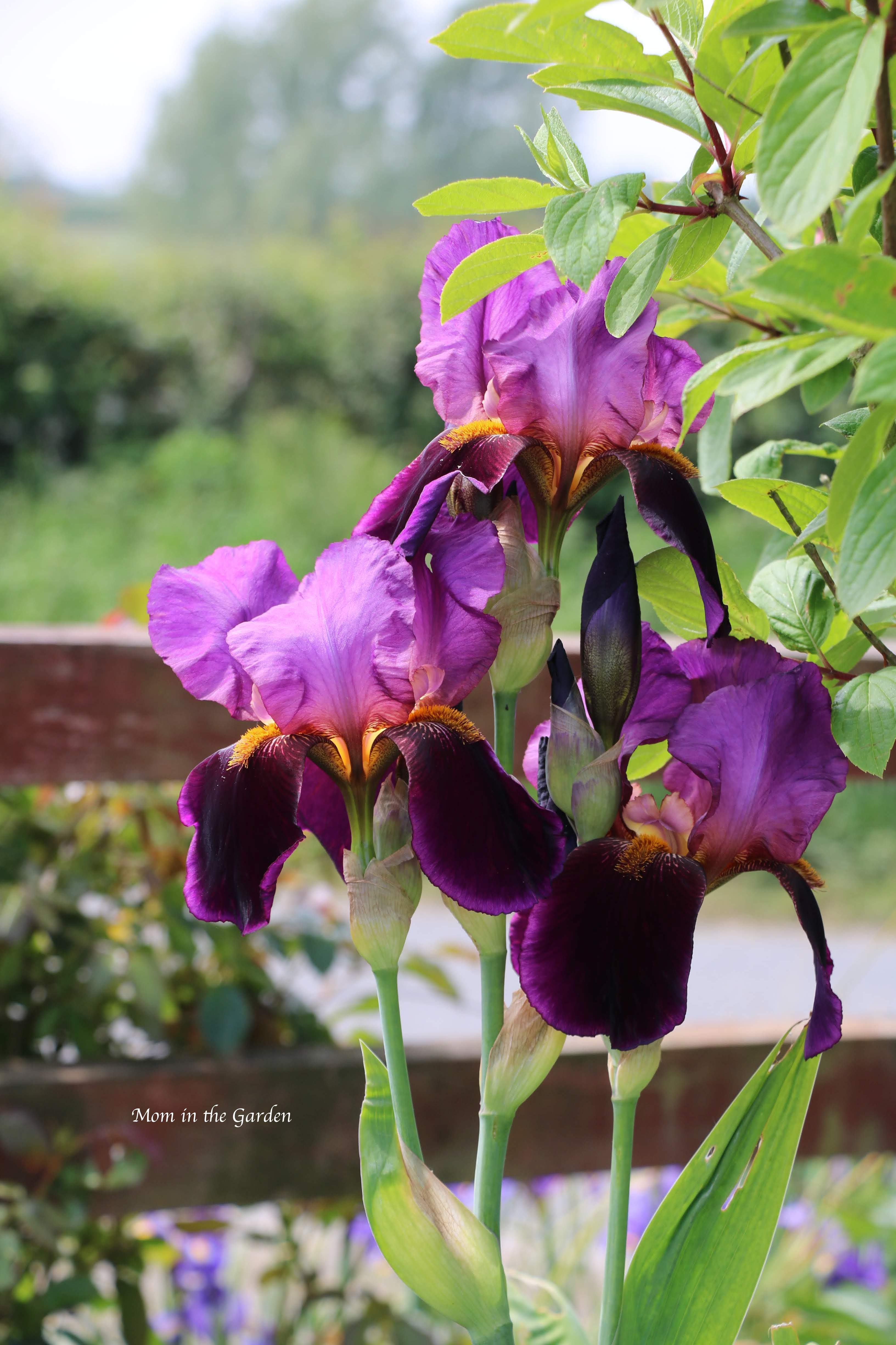 3 – Iris from February through July. We can start with Iris reticulata (bottom center) that blooms in February. Mine aren’t blooming just yet this year, but are up from the soil. We then have a bit of a break until May when most of the others start to bloom. We have Dutch Iris (top right), bearded Iris Benton Storrington (middle right), and the Siberian Iris ‘Shirley Pope’. The Siberian iris (top left) also blooms in May/June. And lastly, to finish out the iris season, we have another variety of Dutch iris that blooms at the end of June through the beginning of July. It is planted among the Incrediball hydrangea. I usually use it in a fourth of July arrangement.