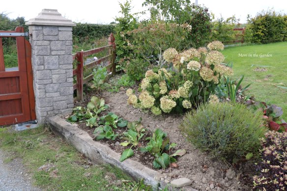 A little more breathing room after we divided the Bergenia plants (my rusty looking Incrediball hydrangea plant in the background)