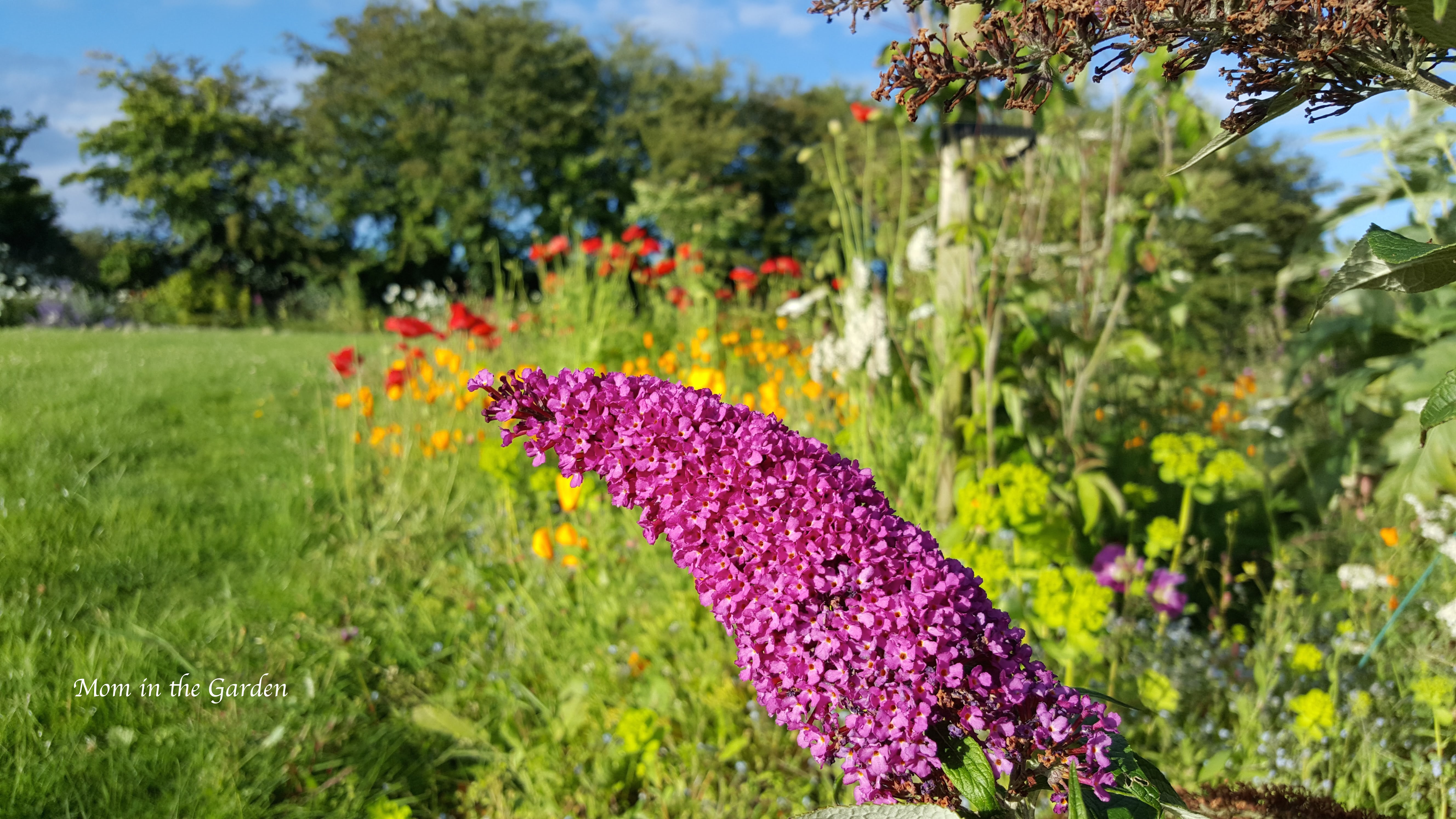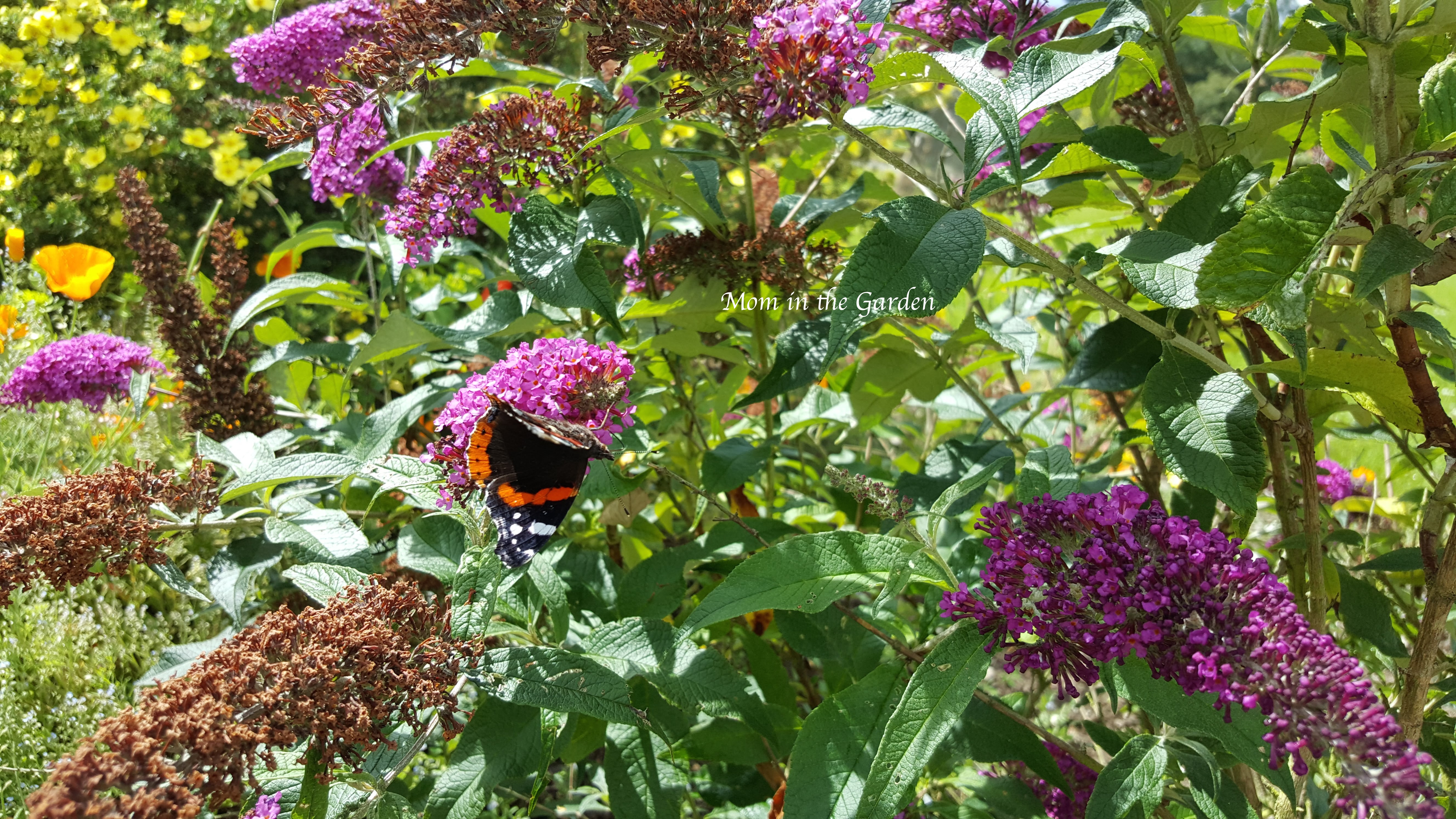 I had the pleasure of weeding near the butterfly bush this week. It is now quite fragrant, and attracts so many butterflies to its sweet flowers. One day it was only covered in Peacock butterflies, but the next time there were three varieties (the third being small Tortoiseshell). What a treat!