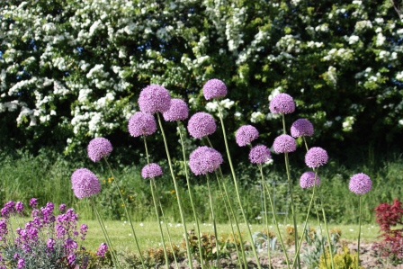 We were quite lucky with our Allium this year. The wind has held off for the most part, and I’ve enjoyed their long showy splendor for a few weeks now. Last year they were knocked completely over in their first week of blooming. This one garden is transforming into a purple garden! I think the Allium and Erysimum go really well together.