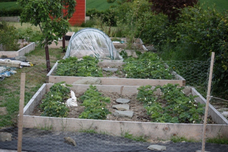 We added in some stepping stones into the strawberry beds, and a wee bunny. I’m sure he’ll definitely scare any birds away…